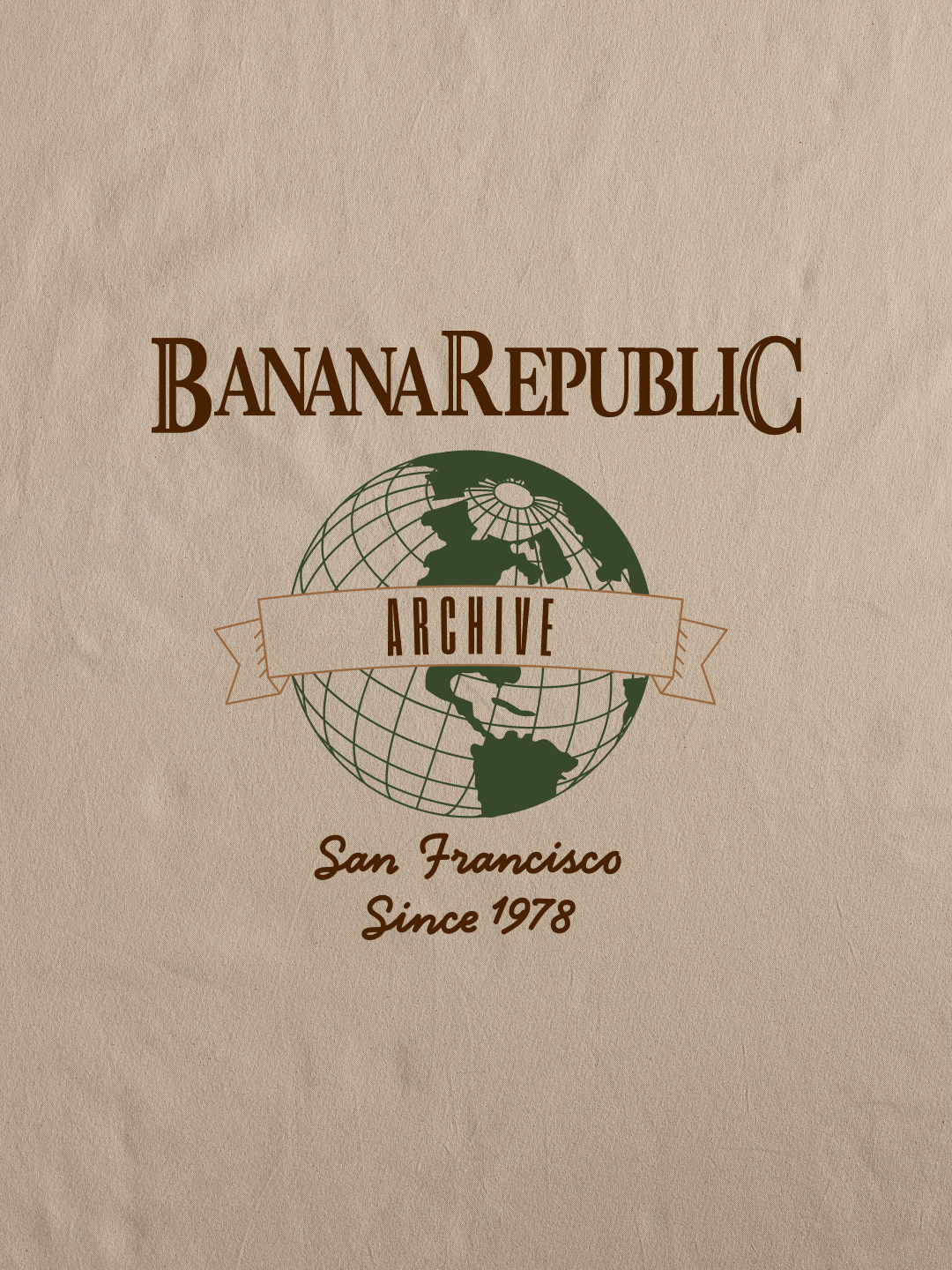 The Banana Republic Archive logo is a revival of one of our original vintage neck labels. We brought the label back for all Archive re‑issue pieces, updating the mark just enough to create a seamless match between the fabric label and the hangtag. A modern refresh that honors the heritage.